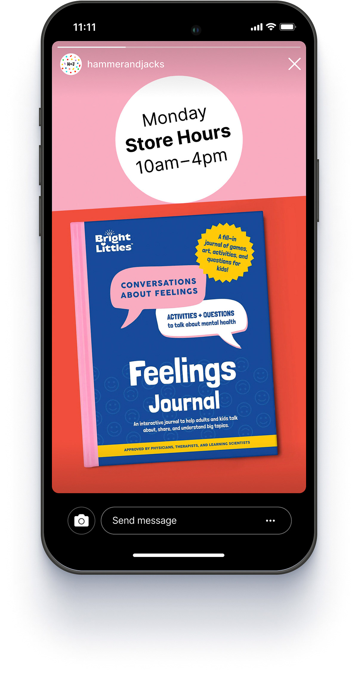 I also developed a comprehensive branding package for the toy store’s technicolored event space, including a logo design, a custom typeface, monthly printable coloring pages, loads of reusable shop hours stories for the ‘gram and a great illustration of the giant TV stage. 🌈 📺 🎉