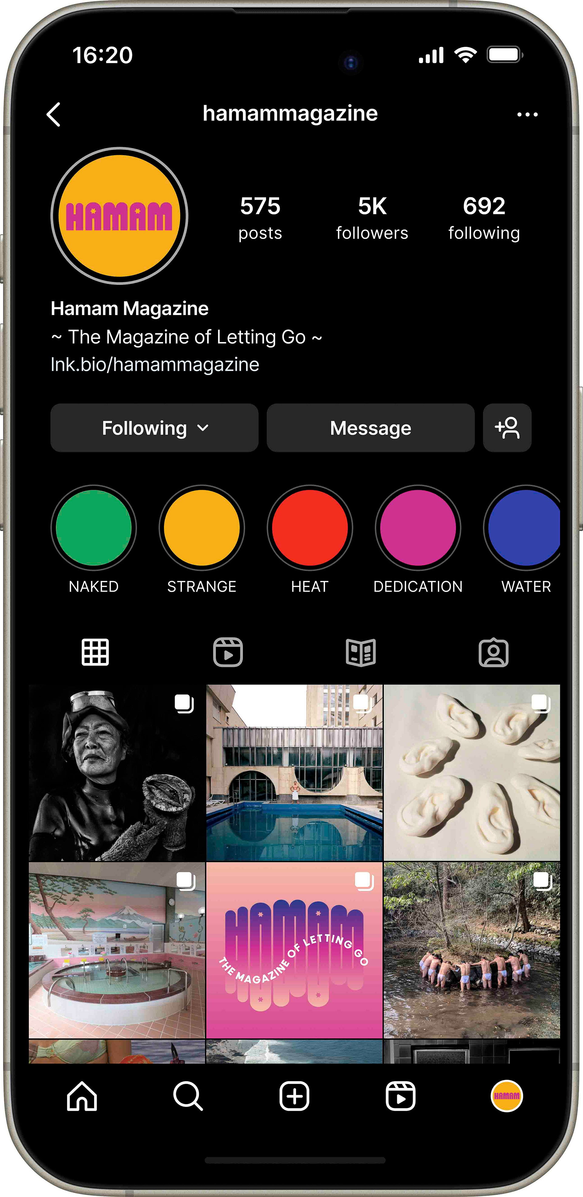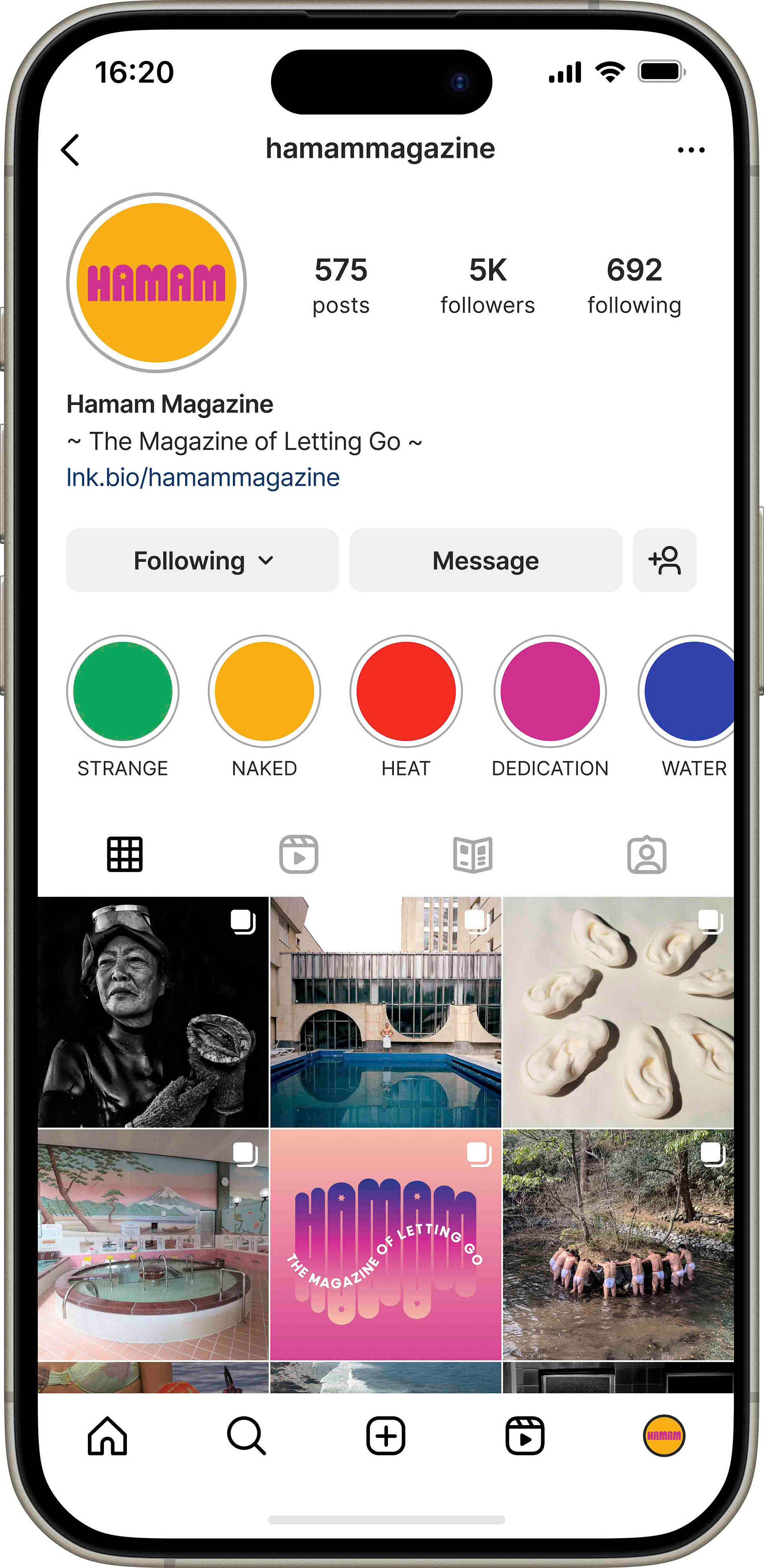 The international bathing community engaged heavily with our stories, so I put significant focus there to supplement our daily feed posts with playful and vibrant designs. The magazine has a great logo and deeply talented contributors from around the world, so it always worked in our favor. 💦 🧼